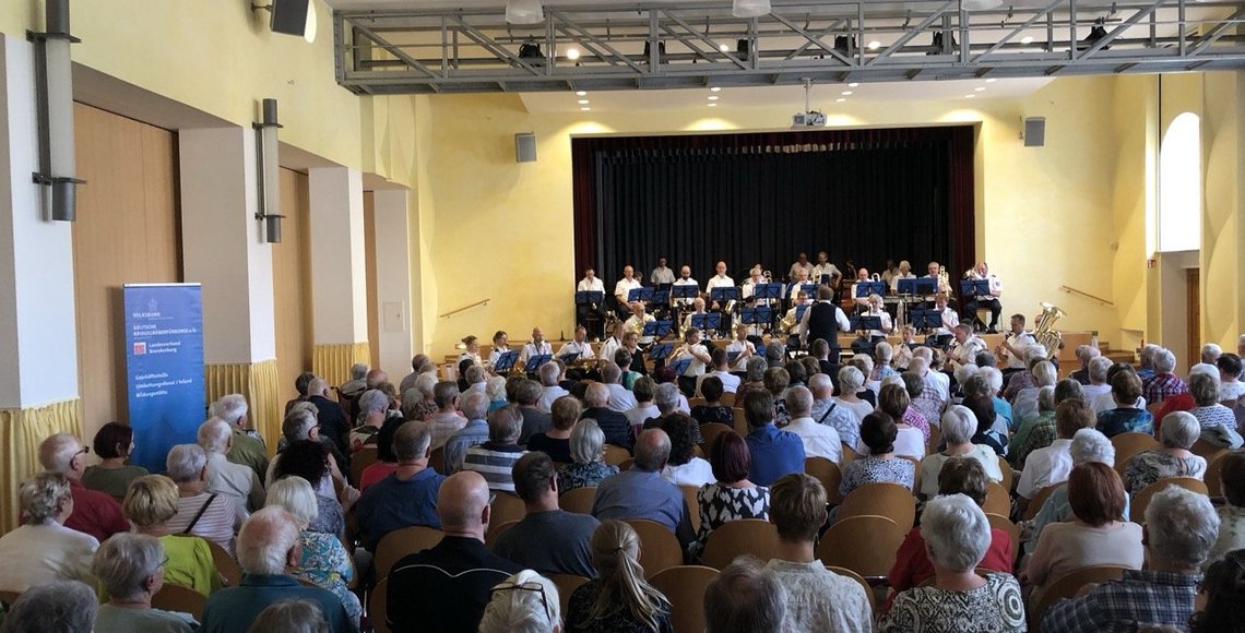 Rund 220 Menschen sind ins „Kurmärker Bürgerhaus“ gekommen. Das Landespolizeiorchester Brandenburg spielt auf Einladung des Volksbundes. Zum dritten Mal in Folge. Was als Konzert begann, ist längst mehr: Begegnung, Erinnern, Verbundenheit.